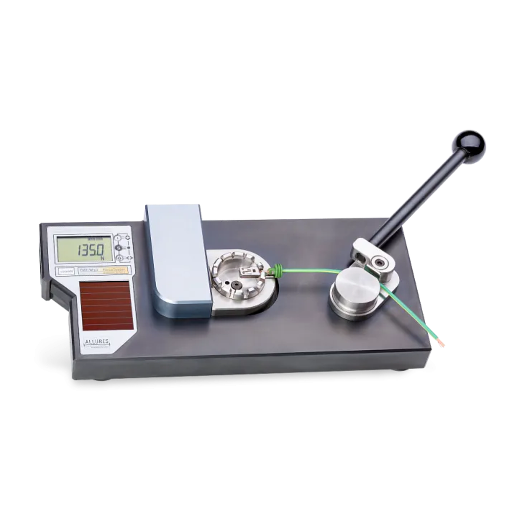 Standard: Pull Tester fitted with Crimp Receptacle and Cable Cam fixtures, USB interface cable, CD-ROM with software (trial version - no licence), power supply.