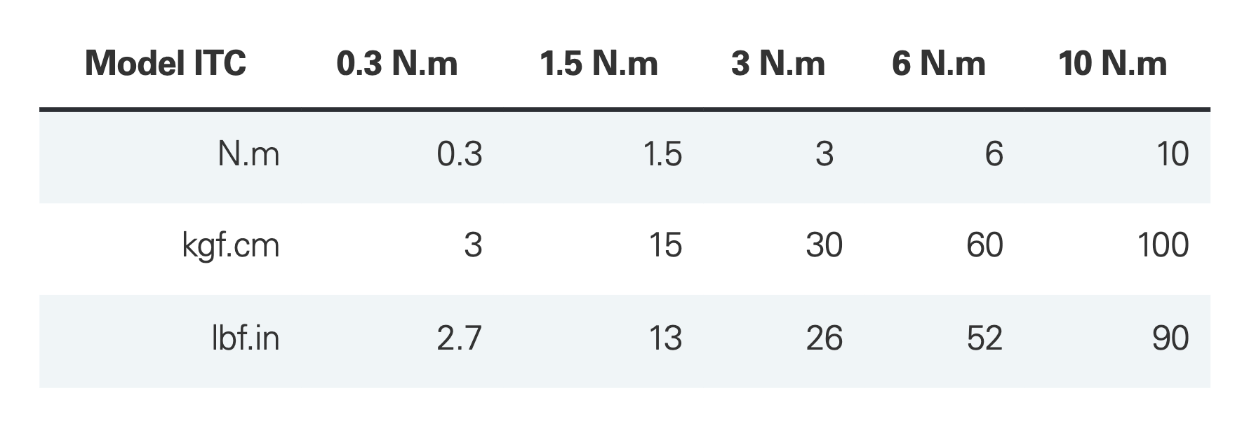 Sensors (ITC): 0.3 N.m to 10 N.m