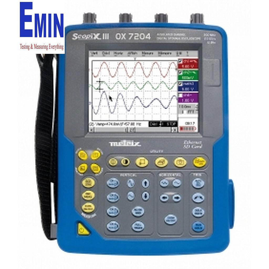 Rich with original functions, like the whole SCOPIX range, the OX 7204 four-channel 200 MHz digital oscilloscope, a "multi-instrument" with a minimum footprint, provides outstanding performance, thanks in particular to its 12-bit / 2.5 GS/s converter.