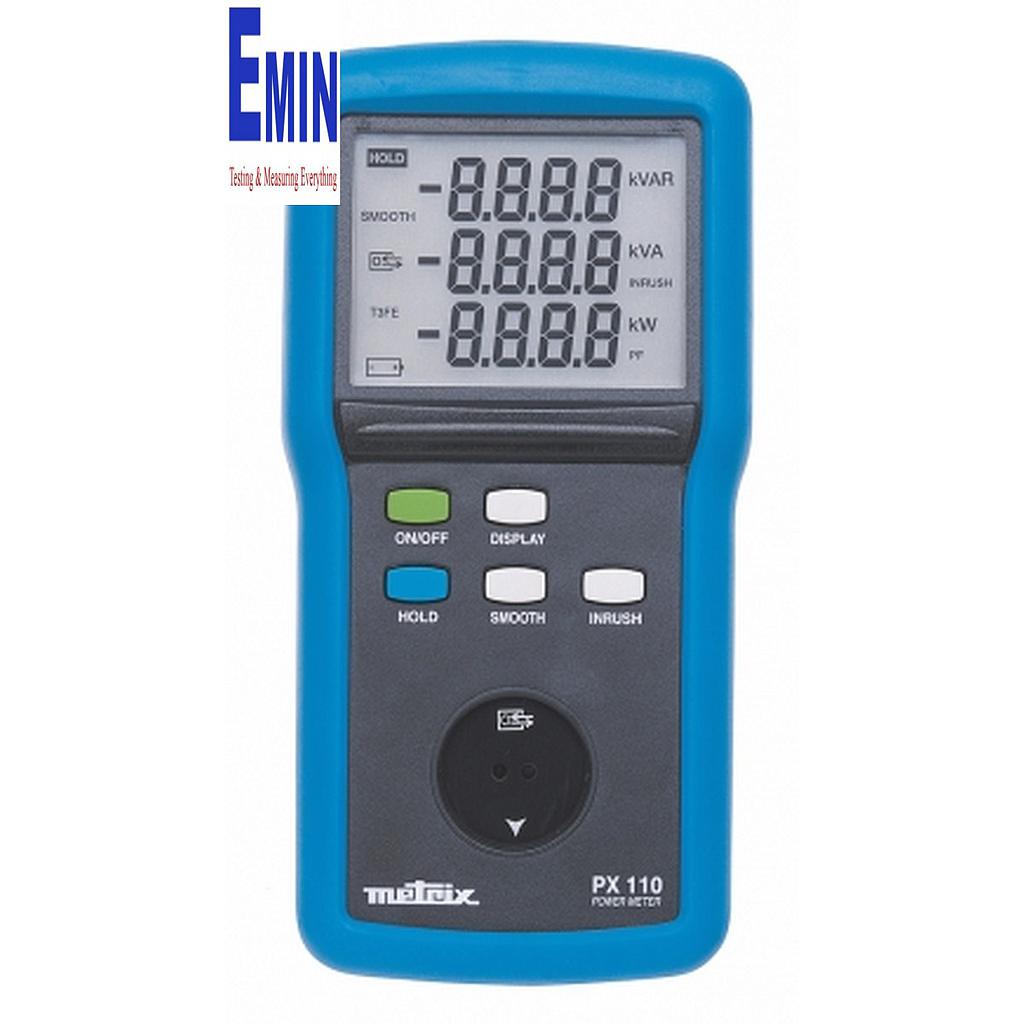 The PX 110 is for single-phase networks. Although it offers complex functions, this TRMS powermeter is very simple to operate.