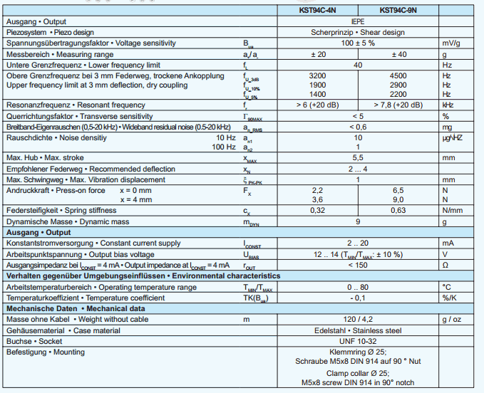 MMF KST94C-4N High Sensitivity Accelerometers (100mV/g, ±20 g, 3200Hz, 3.6N) | EMIN.CO.TH