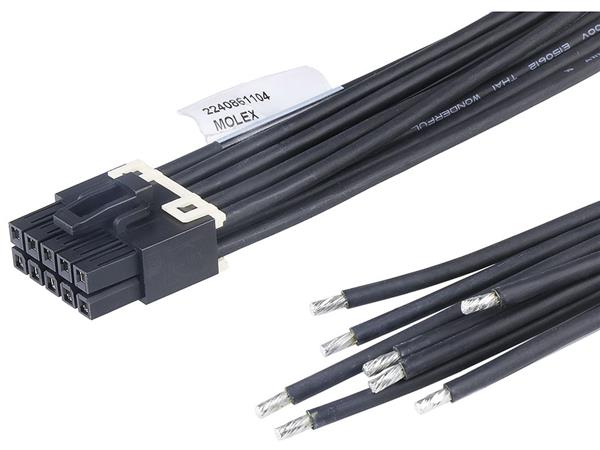 Molex 224086-1104 OTS Cable Assembly Mini-Fit Max Female-to-Pigtail Cable ASSY Tin Plt 10 Ckts 600mm Lgth 2.5mm Blk | EMIN.CO.TH