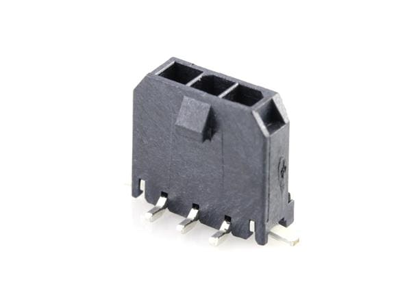 Molex 43650-0350 Headers Micro-Fit 3.0 Vertical Header, 3.00mm Pitch, Single Row, 3 Circuits, with Solder Tab, Tin, Glow-Wire Capable, Black, Tape and Reel
