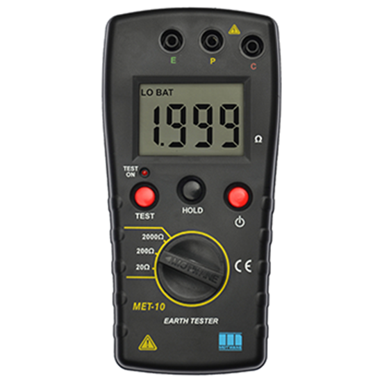 Earth Resistance Range: 20Ω, 200Ω, 2000Ω; 0.01 Ω @ 20Ω range, 0.1Ω @ 200Ω range, 1Ω @ 2000Ω range; 20Ω : ± (2 % of rdg + 5 digits); 200Ω : ± (2 % of rdg + 5 digits); 2000Ω : ± (2 % of rdg + 5 digits)