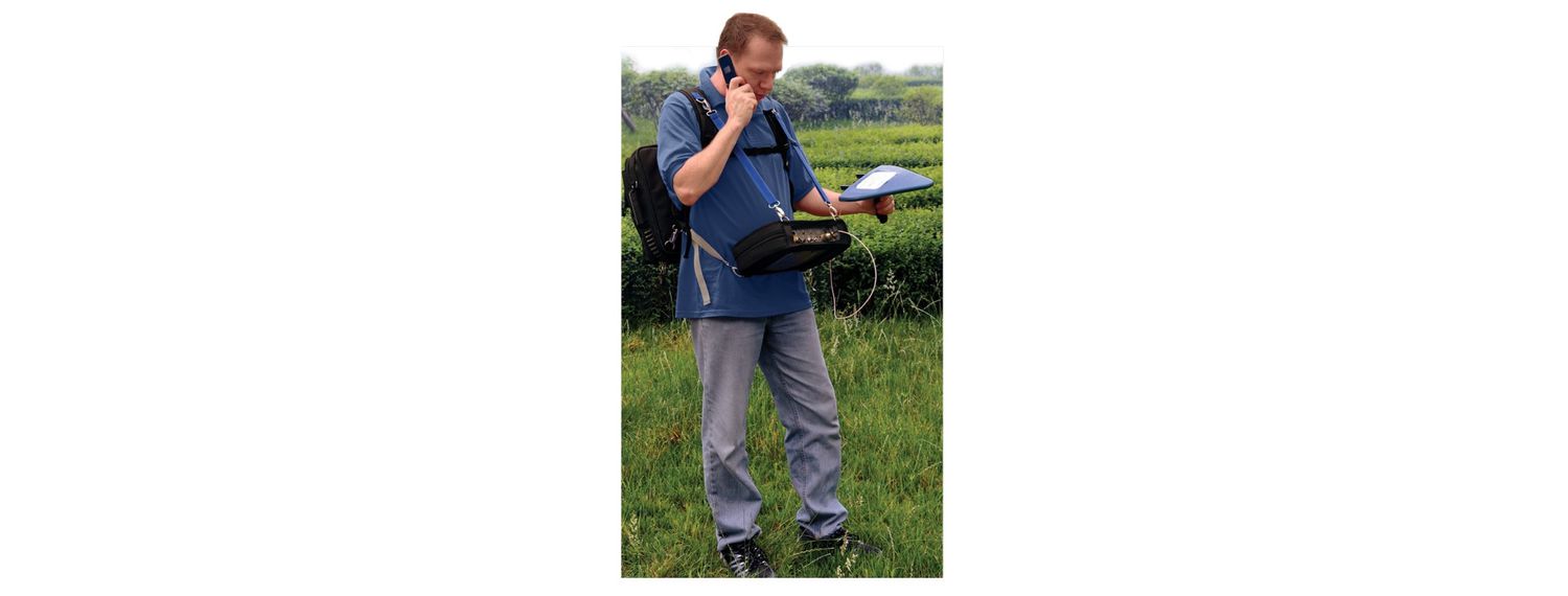 Optional backpack, neck strap, and carrying case enable hands-free operation of the HSA allowing users to hold a directional antenna and communication device when searching for signals.