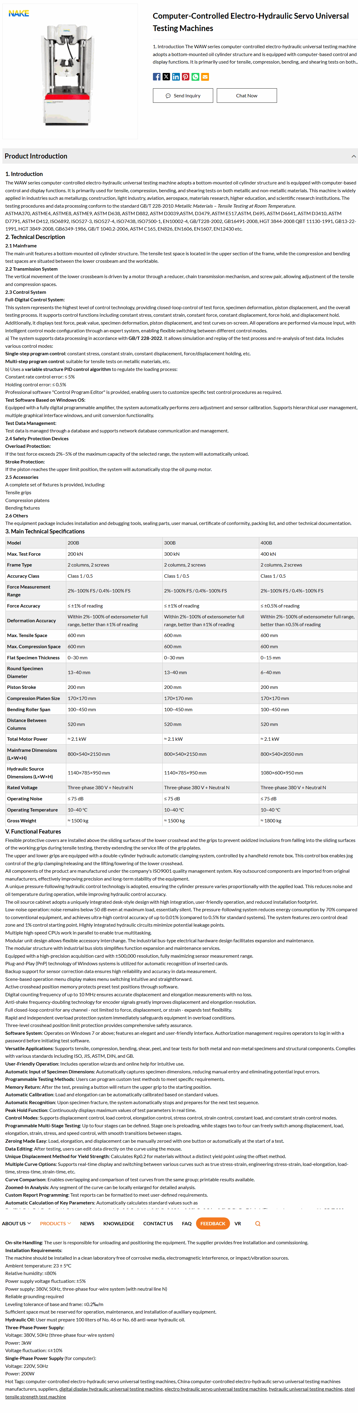 Max. Test Force: 300 kN