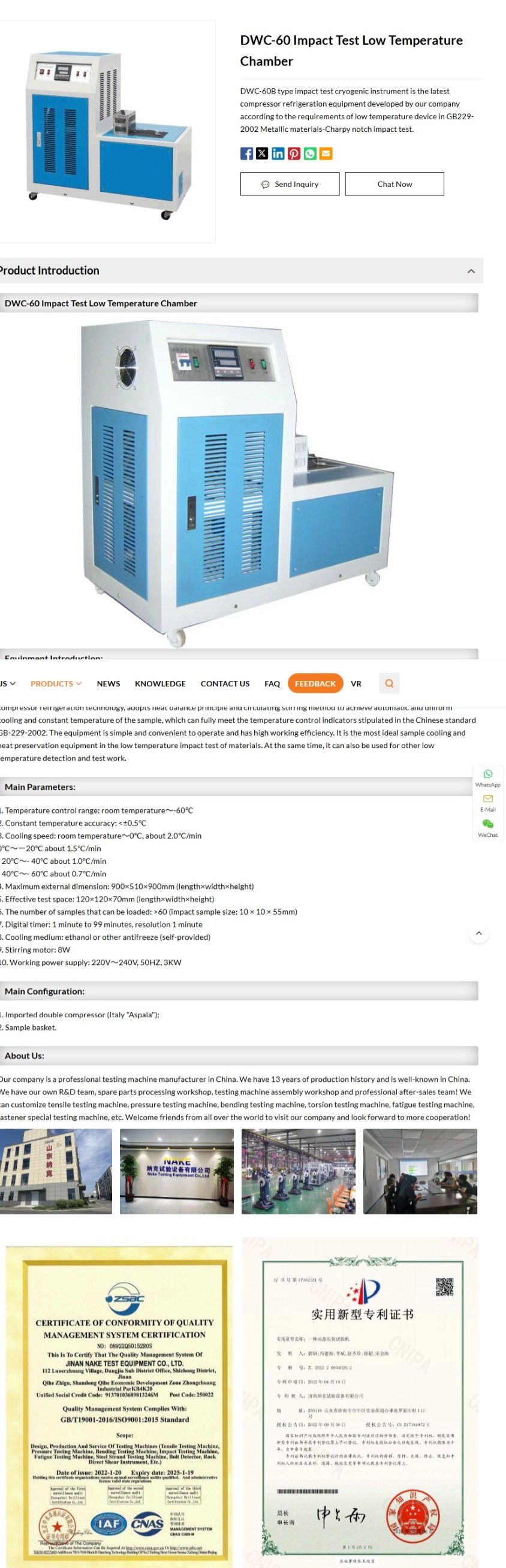 3. Cooling speed: room temperature~0℃, about 2.0℃/min