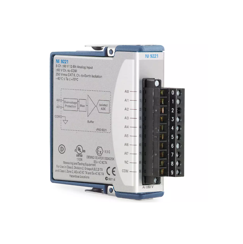 The C Series Voltage Input Module helps you work with voltage measurement applications. This module features isolation to separate channels from each other, from COM, or from earth ground for safety, noise immunity, and high common-mode voltage range. The module features up to 100 V of overvoltage protection for errant signal connection or unexpected outputs to the individual channels. You can use included options such as configurable input ranges, output channels, various connectors, and enclosed or non-enclosed modules.The C Series Voltage Input Module includes the NI-DAQmx driver and configuration utility that simplify configuration and measurements. NI-DAQmx supports NI programming environments as well as Python, ANSI C, C#.NET, and MathWorks MATLAB® software.