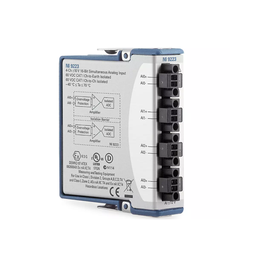 The C Series Voltage Input Module helps you work with voltage measurement applications. This module features isolation to separate channels from each other, from COM, or from earth ground for safety, noise immunity, and high common-mode voltage range. The module features up to 100 V of overvoltage protection for errant signal connection or unexpected outputs to the individual channels. You can use included options such as configurable input ranges, output channels, various connectors, and enclosed or non-enclosed modules.The C Series Voltage Input Module includes the NI-DAQmx driver and configuration utility that simplify configuration and measurements. NI-DAQmx supports NI programming environments as well as Python, ANSI C, C#.NET, and MathWorks MATLAB® software.
