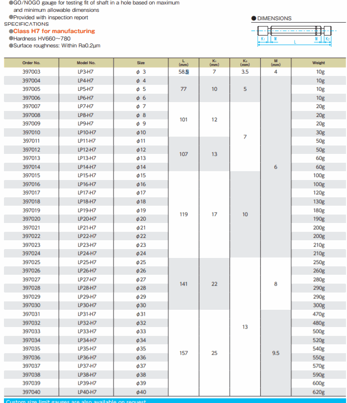 Niigata Seiki LP21-H7 螺纹针规 | EMIN.CO.TH
