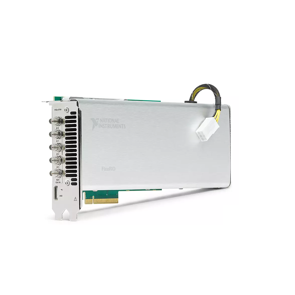 FlexRIO Digitizer Devices feature high-performance analog-to-digital converters with lightweight analog front-ends designed to maximize sample rate, bandwidth, and dynamic range. These devices use FPGAs from Xilinx alongside LabVIEW and Vivado programming options for custom algorithm implementation and real-time signal processing. These devices also feature an auxiliary I/O connector with GPIO for triggering or digital interfacing and the option for high-speed serial communication.