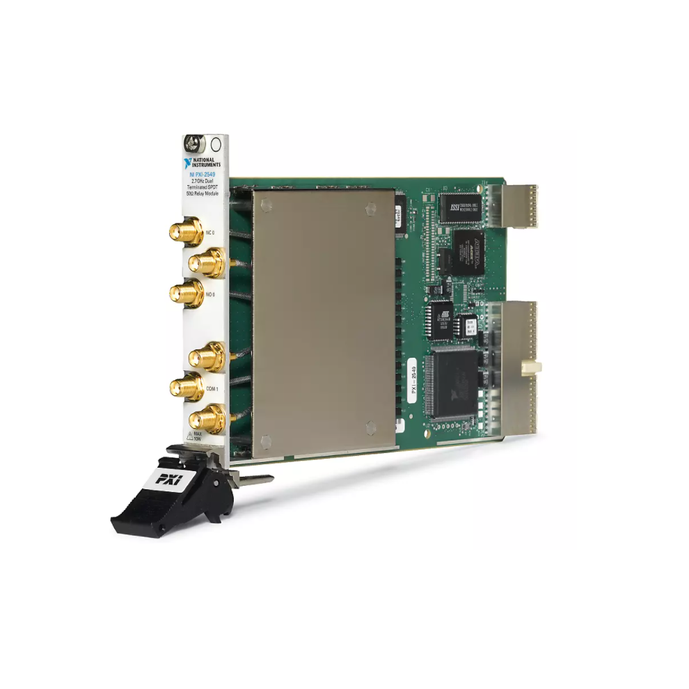 PXI RF Relay Modules offer single-pole double-throw (SPDT) and terminated switches. SPDT models include excellent insertion loss, voltage standing-wave ratio (VSWR), and isolation parameters to minimize signal degradation. You can use the onboard relay-count-tracking feature on these models to predict relay lifetime and reduce unexpected system downtime. SPDT models are also well-suited for passing high-order harmonics from PXI RF Signal Upconverter Modules or routing multiple sources to PXI RF Signal Downconverter Modules. Terminated switch models feature front-mounted SMA connectors and high-performance solid-state relays for fast switching time and unlimited mechanical lifetime. These models also include termination on every COM line and channel, which helps minimize reflections of the RF signal and protect your instruments.