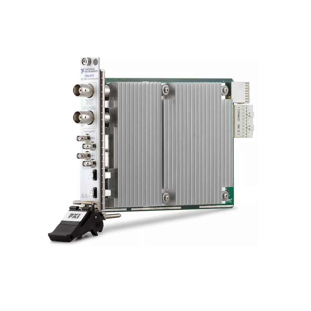 PXI Oscilloscopes are flexible, software‐defined instruments that are versatile enough for both time‐ and frequency‐domain measurements and deliver the benefits of the PXI platform. They feature up to eight channels that can sample at speeds up to 12.5 GS/s with 5 GHz of analog bandwidth. Using the PXI platform, you can synchronize multiple oscilloscopes with other instruments at picosecond‐level accuracy for high‐channel‐count and mixed‐signal applications. These instruments also feature numerous triggering modes, deep onboard memory, and a driver software API that includes data streaming and analysis functions.