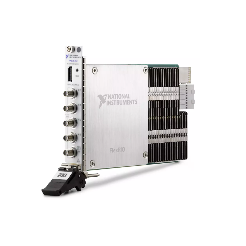 PXI FlexRIO Digitizers feature high-performance analog-to-digital converters with lightweight analog front-ends designed to maximize sample rate, bandwidth, and dynamic range. These modules use FPGAs from Xilinx alongside LabVIEW and Vivado programming options for custom algorithm implementation and real-time signal processing. For applications that require high channel counts, PXI FlexRIO Digitizers use the NI-TClk API and the timing and synchronization capabilities of PXI to achieve sub-sample synchronization between multiple modules in a chassis. These modules also feature an auxiliary I/O connector with GPIO for triggering or digital interfacing and the option for high-speed serial communication.
