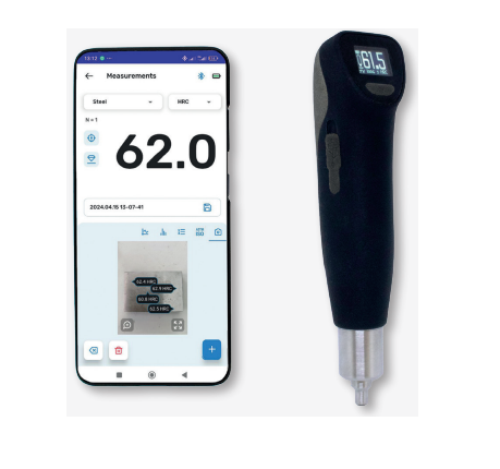 Measurement range: HV 10 – 1999 (9999), HB 76 – 618, HRB 41 – 105, HRC 20,3 – 68, HRE 70 – 108.5, HRF 82.6 – 115.1, HRA 60.7 – 85.6, HRD 40.3 – 76.9, HR45N 19.9 – 75.4, Knoop HK 87 – 920, Shore HS 34.2 – 97.3, Tensile strength MPa 255 – 2180