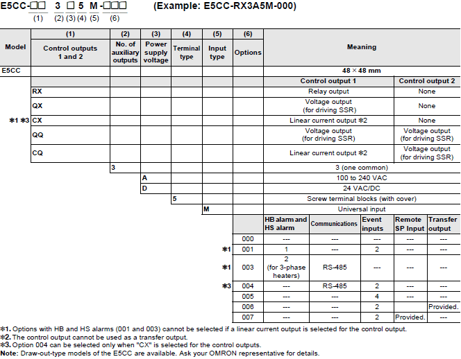 OMRON E5CC-CX3A5M-007 Digital Temperature Controller (100 ~ 240 VAC; 48x48mm) | EMIN.CO.TH