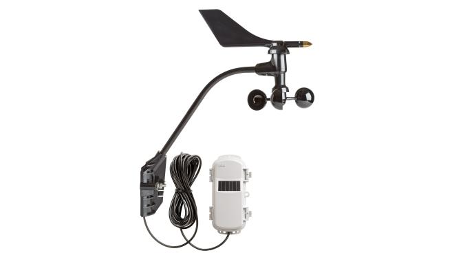 A wireless sensor that works with HOBOnet to record wind speed, wind gust, and wind direction. HOBOnet wireless sensors communicate data directly to the HOBO RX3000 or the HOBO MicroRX station or pass data through other wireless sensors back to the central station. They are preconfigured and ready to deploy, and data is accessed through HOBOlink, Onset's innovative cloud-based software platform.