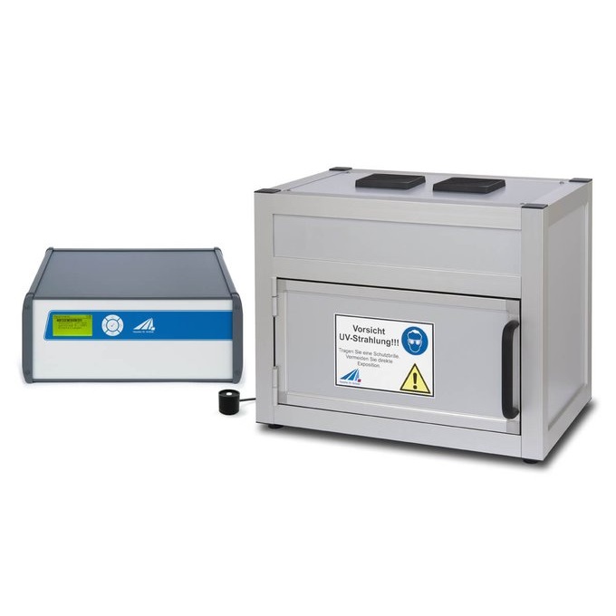 Due to the low heat input of the UV-LEDs and the temperature of approximately 40° in the sample chamber, thermal damages of the samples are minimized. Because of the high homogeneity of the irradiance, the samples can be placed in any position.