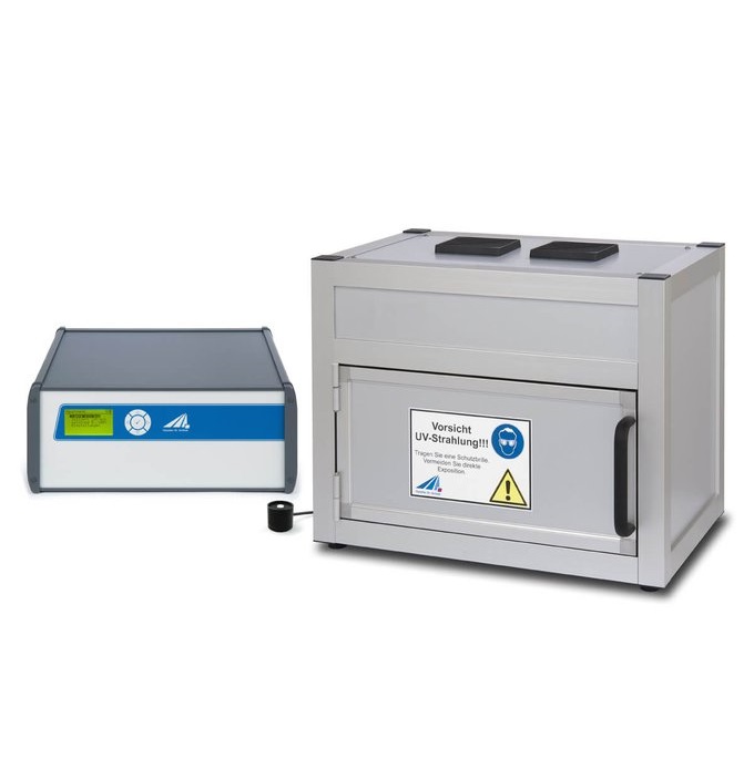 With the UV LED chamber BSL-02, we offer you a versatile irradiance chamber on a basis of high quality UV LEDs. The most common UV curing adhesives can be applied, due to the high irradiance of 400 mW/cm².