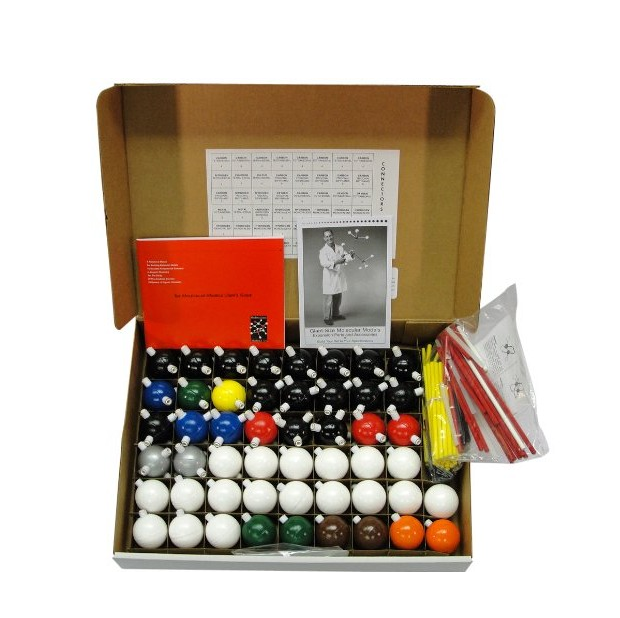 Construct thousands of giant skeletal structures of organic and inorganic molecules. With our specially designed bond receptors you can easily and quickly change between chemical structures. The Original Giant Set includes 50 atom centers, 104 rigid bonds, 8 flexible bonds (a total of 56 bonds each in the scales of 8 cm/A and 20 cm/A). Includes The user's guide - an illustrated guide to concepts and model building. The atom centers have a diameter of 5 cm making this molecular model set ideal for demonstration.