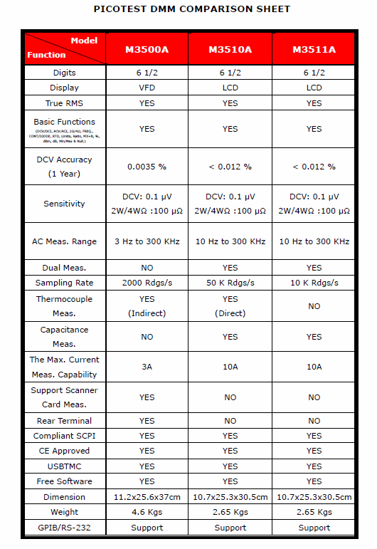 Two and four-wire resistance: 100Ω, 1kΩ, 10kΩ, 100kΩ, 1MΩ, 10MΩ, and 100MΩ.