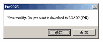 2. The next step will compare the test steps. The 9923 software will not download to the 9923 EEROM if the test steps are the same. The 9923 software will prompt the user whether to download to 9923 if the test steps are not the same. In that case, the system will show a prompt [Have modify. Do you want to download LOAD?], As shown below.