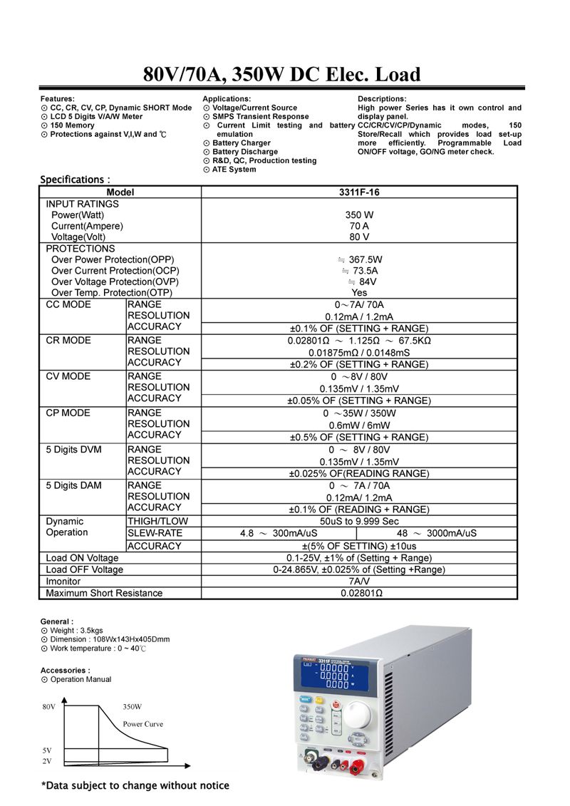 PRODIGIT 3311F-16 DC Electronic Load (80V, 70A, 350W) | EMIN.CO.TH