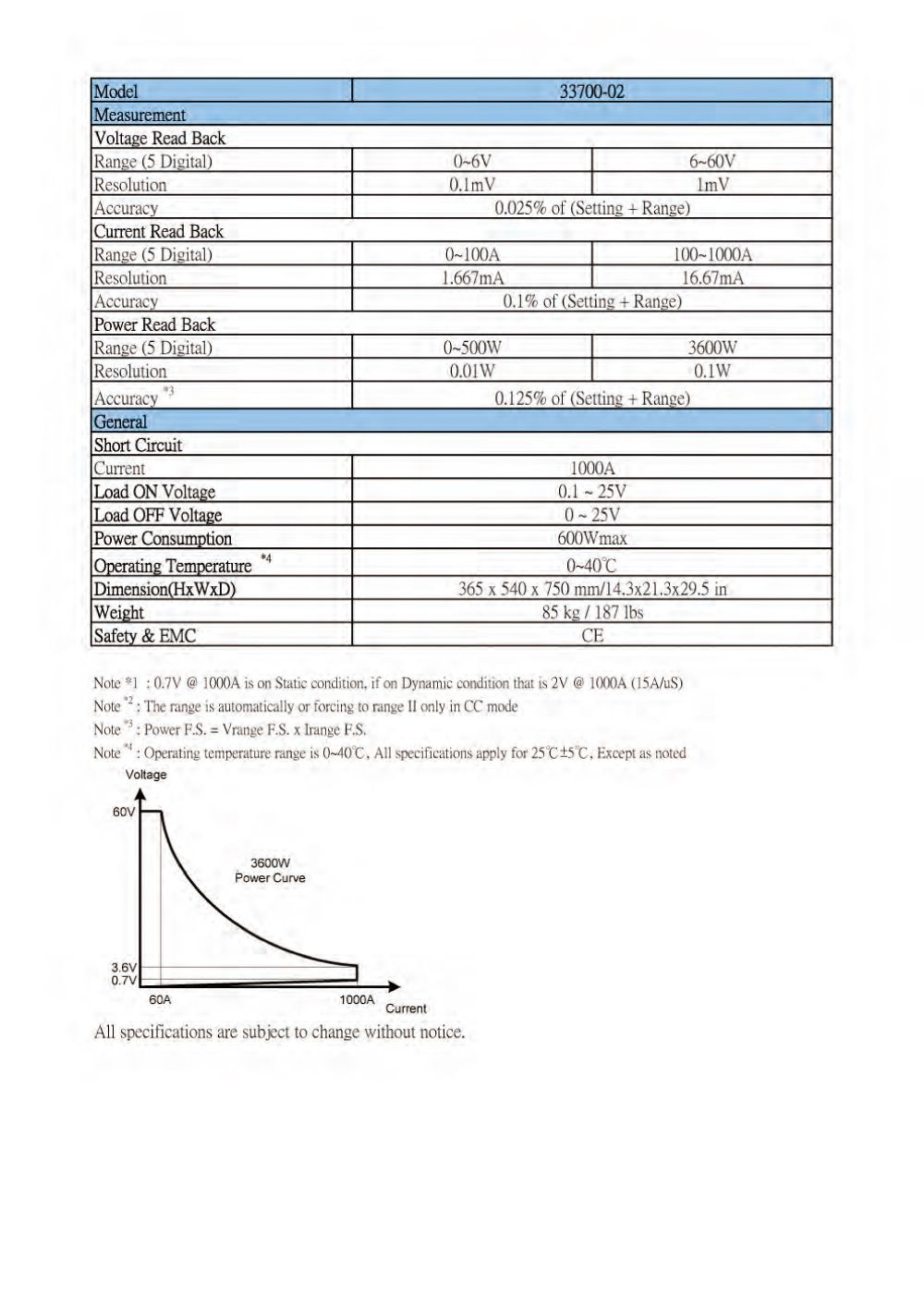Power : 0 ~ 500W/3600W, ±0.65%