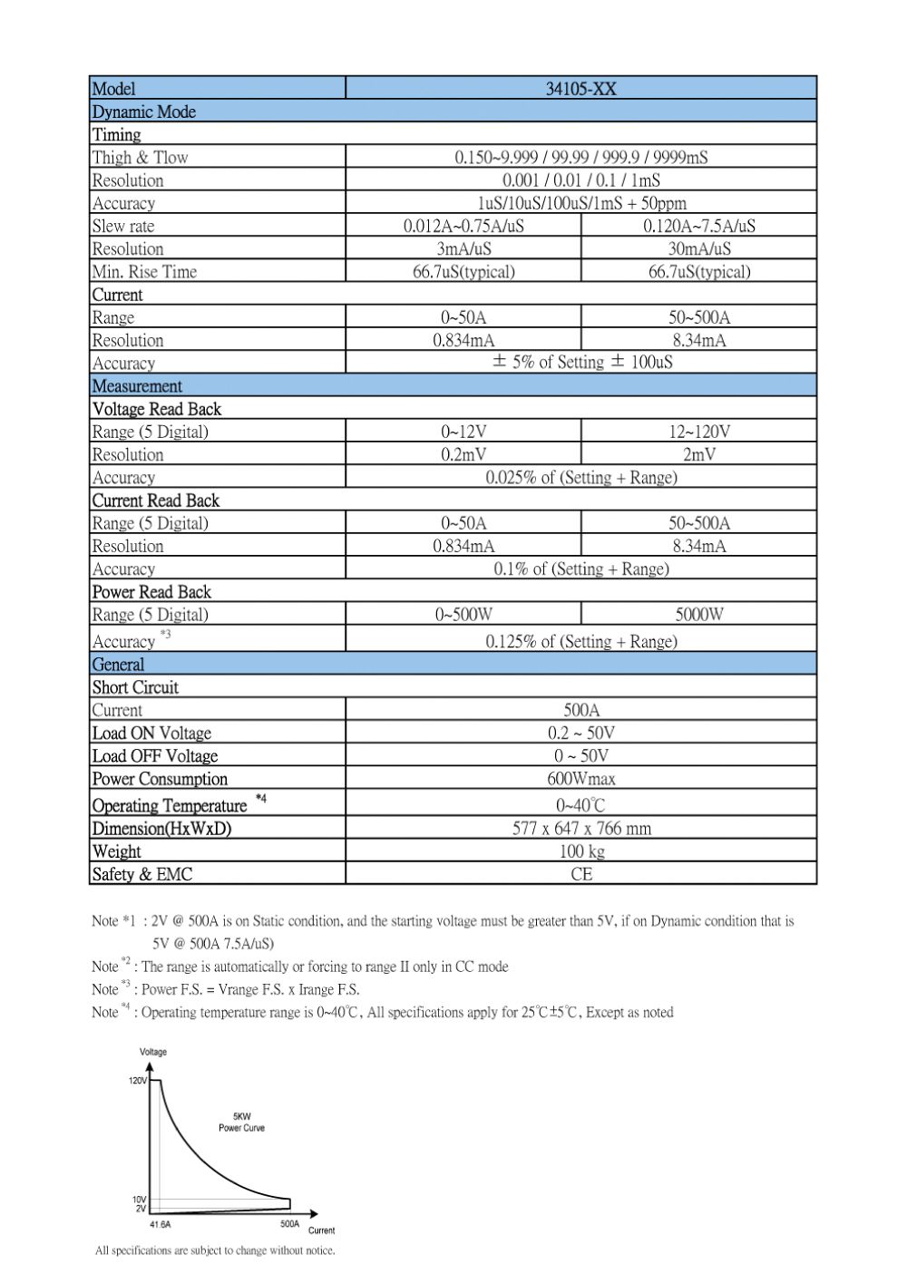 Power : 0 ~ 500W/5000W, ±0.125%