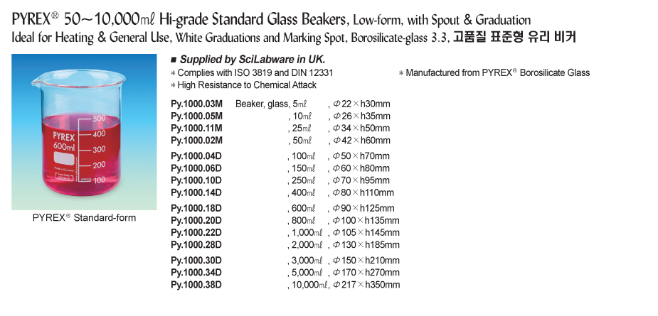 Pyrex Py.1000.34D Hi-grade Standard Glass Beaker (5000ml) | EMIN.CO.TH