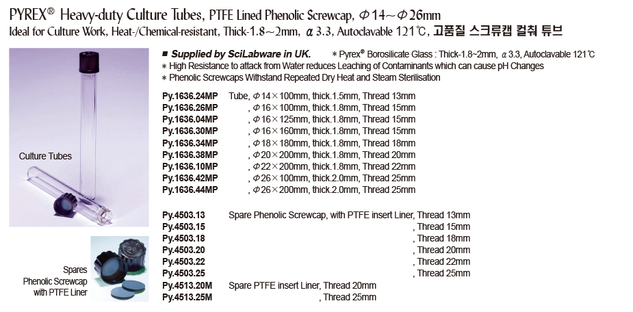 Pyrex Py.1636.04MP Heavy-duty Culture Tube (Φ16 x 125mm) | EMIN.CO.TH