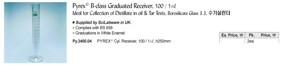 Pyrex Py.3400.04 B-class Graduated Receiver (100ml, 1ml, h250mm) | EMIN.CO.TH