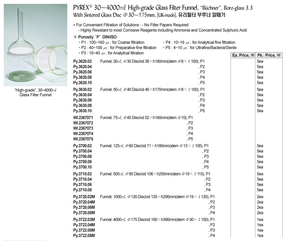Pyrex Py.3620.10 High-grade Glass Filter Funnel (P5: 4~10μm, 30ml) | EMIN.CO.TH