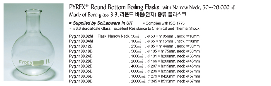 Pyrex Pyg.1100.32D Round Bottom Boiling Flask (4000ml) | EMIN.CO.TH