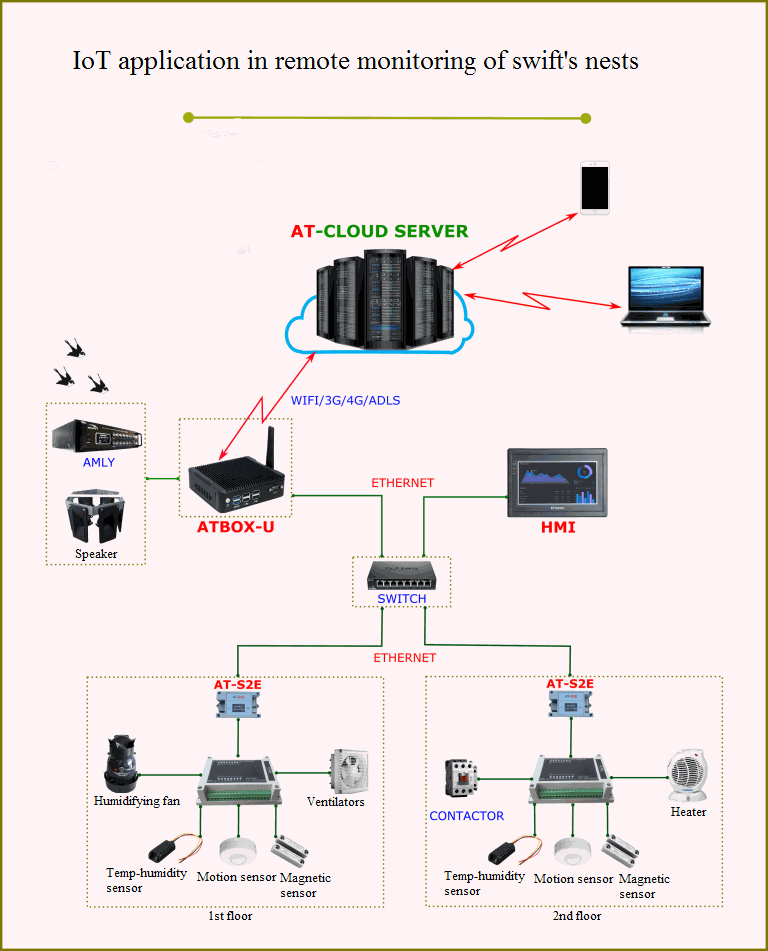 Constructing a complete system responsible for monitoring the swift’s ness enables remote supervision of such parameters as: temperature, humidity,… While controlling the end devices to guarantee optimum environment for swifts to reside.