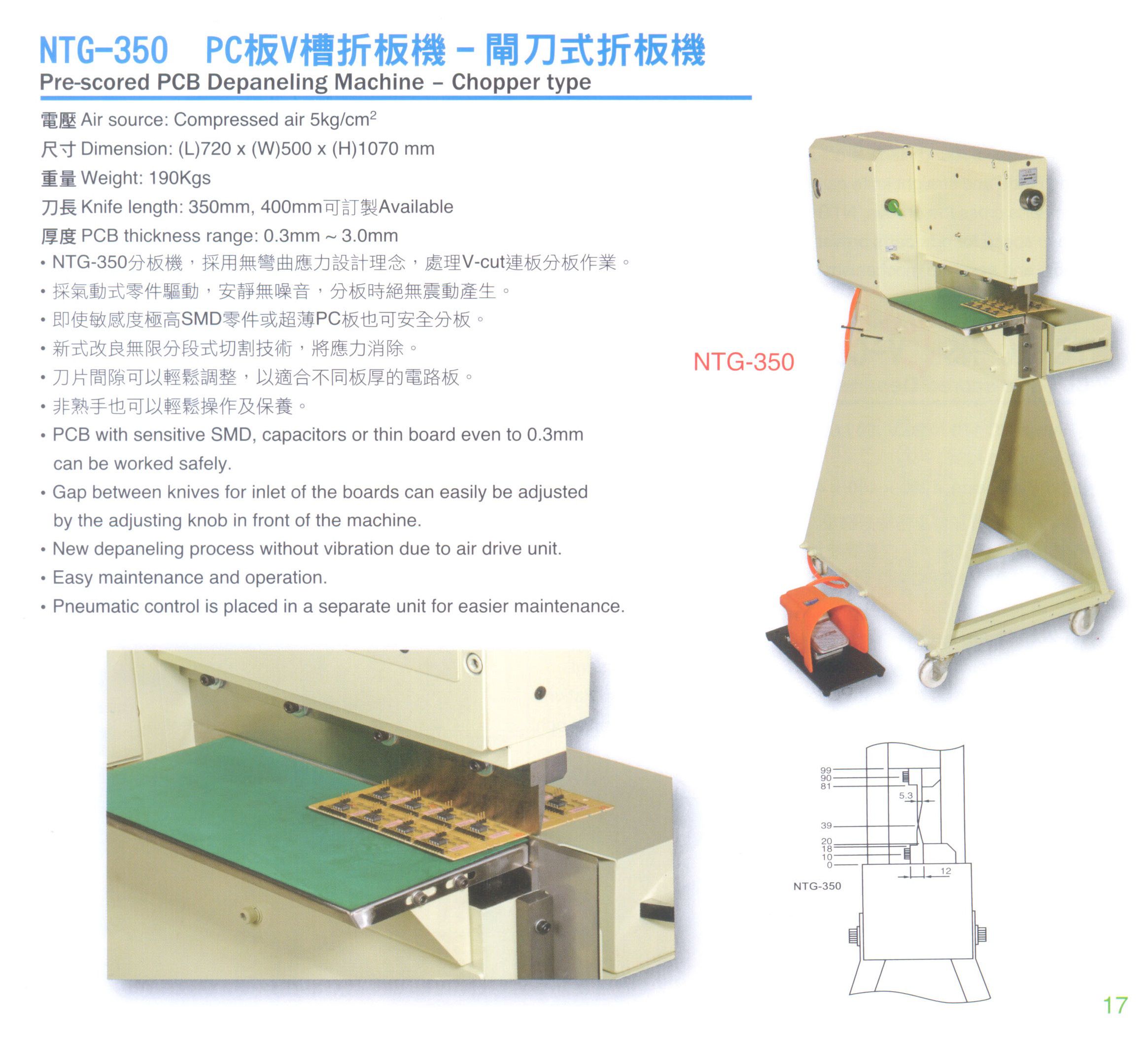 This enables the boards less than 1mm thickness to be separated safely and without creating stress. This machine is pneumatically driven using standard parts. It is noiseless operation with none of usual compressed air noises. Rigid design without vibration in operation