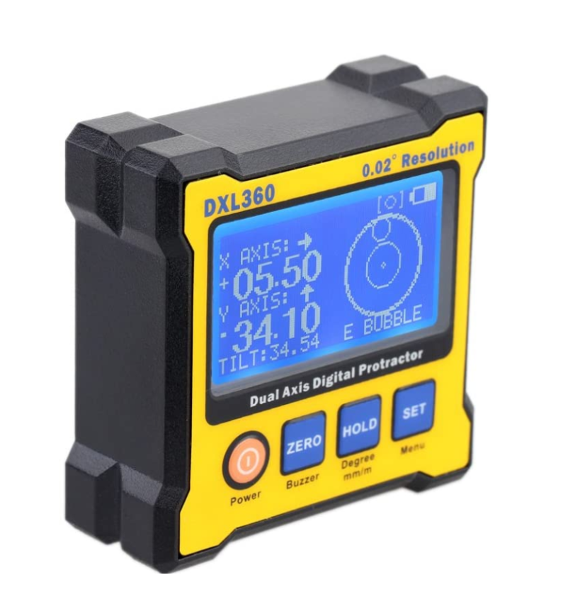 - Resolution: 0.02° (± 0.349 mm / m + 1%)