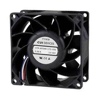 Same Sky (formerly CUI Devices) CFM-8038B-140-449 Axial dc axial fan, 80 mm square, 38 mm, 10.8-13.2 Vdc, 4.56 W, 4000 RPM, 49.42 CFM, AR