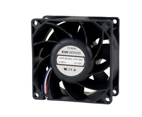 Same Sky (formerly CUI Devices) CFM-8038S-130-387-22 Axial dc axial fan 80 mm square 38 mm 10.8 13.2 Vdc 3.48 W 3000 RPM 37.06 CFM AR TSPWM