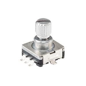 Same Sky (formerly CUI Devices) RIC11-31S10K2-GSMT Incremental MECH, 15 PPR 30 DET, 5 Vdc, SW, 5 mm smth bush, knurled shaft, horizontal, GSMT