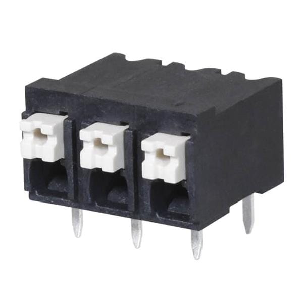 Same Sky (formerly CUI Devices) TBLH10-500-03BK Fixed Terminal Blocks Terminal block, screwless, High Temp, 5.00, Horizontal, 3, Black w Gray Button
