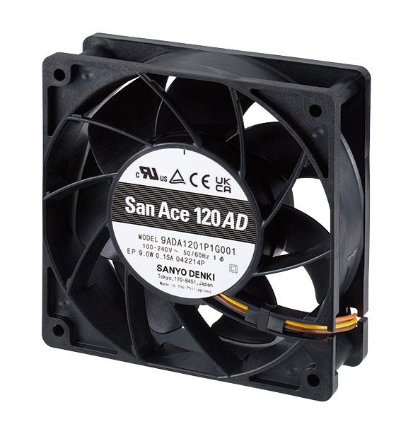 Sanyo Denki 9ADA1201H1H001 Axial AC, DC Axial Fan, 120x120x38mm, 100-240VAC, 119CFM, 3x Wire, Low Speed Sensor | EMIN.CO.TH