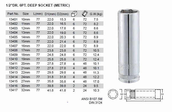SATA 13403 DR. 6PT. DEEP SOCKET (12mm,1/2inch) | EMIN.CO.TH