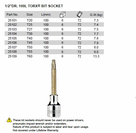 SATA 25109 1/2inch DR. 100L TORX BIT SOCKET (T-60,1/2inch) | EMIN.CO.TH
