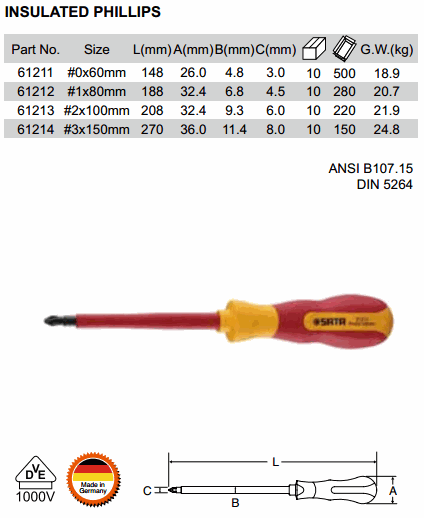 SATA 61211 INSULATED PHILLIPS (148mm, #0x60mm) | EMIN.CO.TH