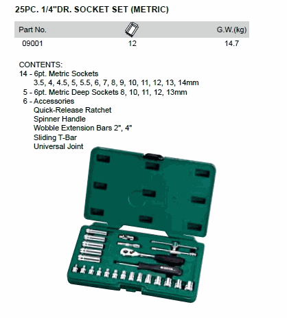 SATA 09001 25PC. 1/4inch DR. SOCKET SET (METRIC) | EMIN.CO.TH