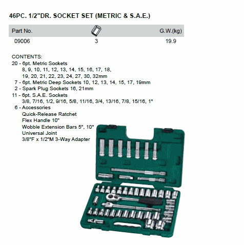 SATA 09006 46PC. 1/2inch DR. SOCKET SET (METRIC & S.A.E.) | EMIN.CO.TH