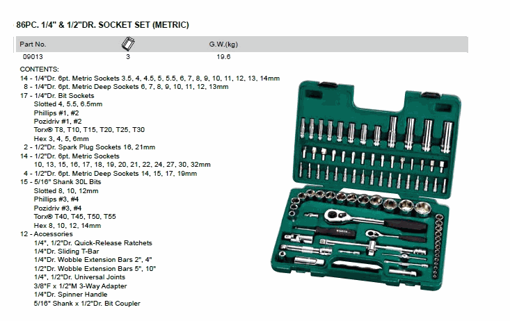 1/4inch Dr. 6pt. Metric Sockets 14pc