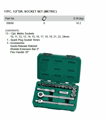 SATA 09086 17PC. 1/2inch DR. SOCKET SET (1/2inch,17 chi tiết) | EMIN.CO.TH