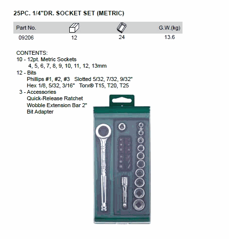 SATA 09206 25PC 1/4"DR SOCKET SET (METRIC) | EMIN.CO.TH